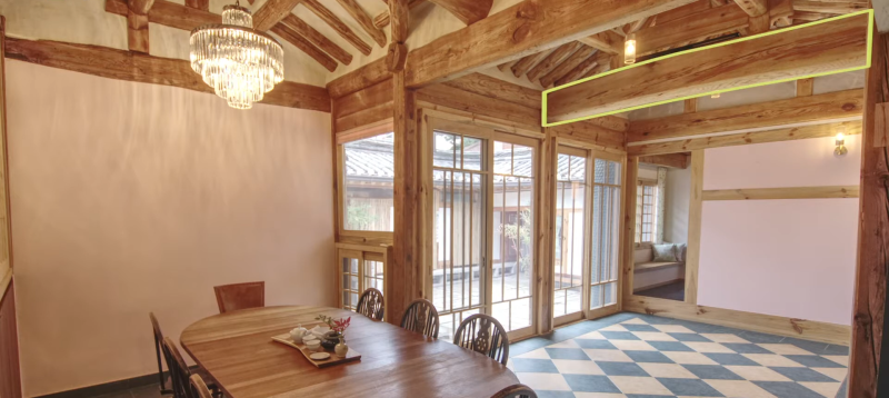 대들보 근처는 벽이나 천장을 꾸미지 않아서